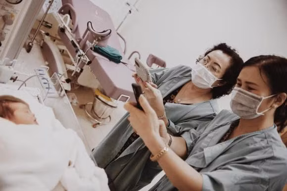 Anh liên tục xoa bóp lưng cho vợ, trấn an vợ, ôm vợ để cô phần nào giảm bớt cơn đau và được an ủi hơn. Đặc biệt, khoảnh khắc trong phòng sinh khi con gái chào đời, bà ngoại và bà nội đều chụp ảnh bé đã phần nào hé lộ chân dung của tiểu công chúa nhà Đông Nhi.