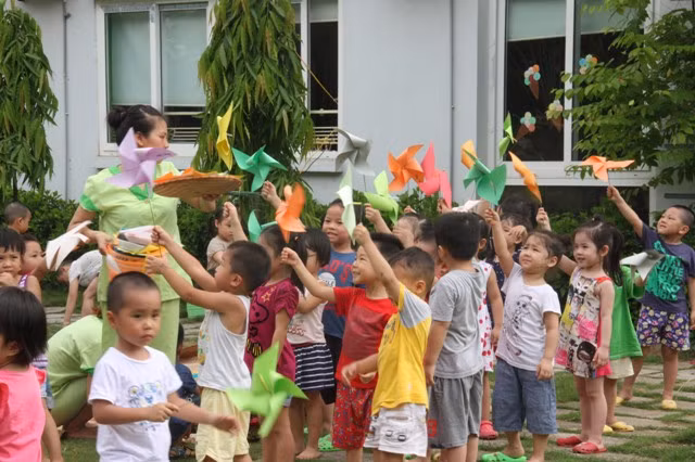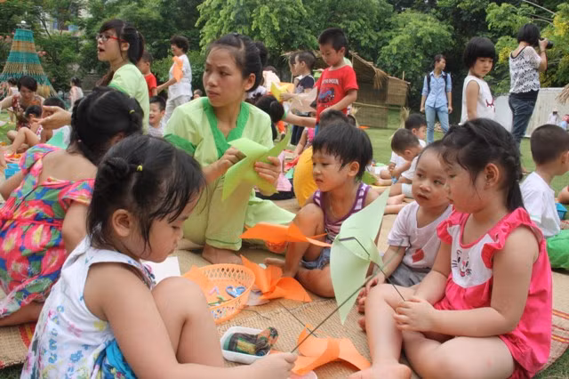 Nói về trải nghiệm vô cùng độc đáo này, nhà giáo Chương Hồng Lê - Hiệu trưởng Trường mầm non Bright School - cho biết: Trẻ sẽ có 2 tuần hòa bình trong cảnh làng quê và những bài học được thiết kế gọn nhẹ; những trò chơi dân gian như lội ao tát cá, vượt qua cầu khỉ, bịt mắt đập bóng, tốc váy hứng dừa… ; các môn tạo hình thú vị làm diều, chong chóng, làm hình con nghé bằng lá cây…