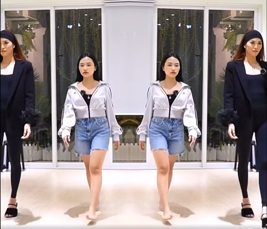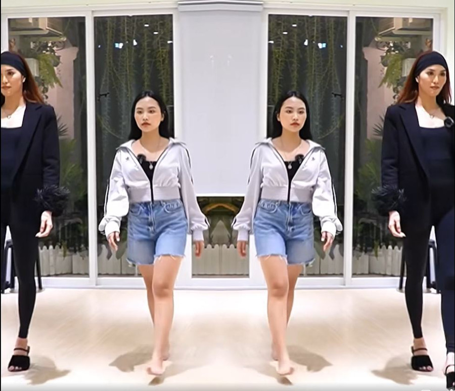 | Phương Mỹ Chi chăm chỉ tập luyện catwalk cùng siêu mẫu Lan Khuê. |