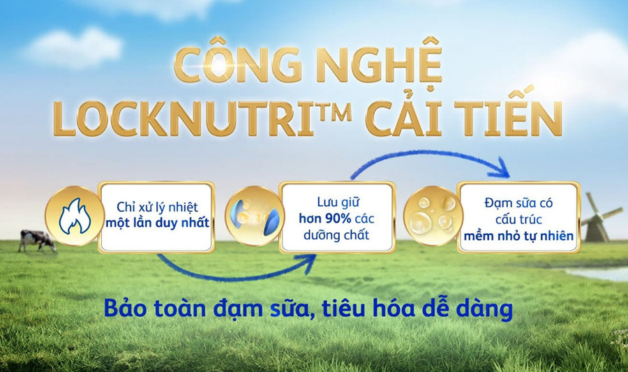 Quy trình LockNutri tiên tiến bảo toàn cấu trúc đạm gần với tự nhiên nhất, giúp bé hấp thu nhanh và dễ dàng tiêu hóa