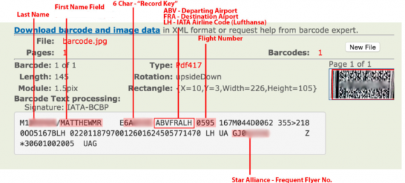 Ngoài thông tin về họ tên, dữ liệu ẩn trong mã vạch của vé máy bay còn có thông tin về sân bay đi và đến, số của máy bay và mã số dành cho khách hàng của hãng hàng không phát hành vé. Và điều đáng lo ngại là những thông tin này có thể đọc được bằng các phần mềm đọc mã vạch miễn phí trên mạng.