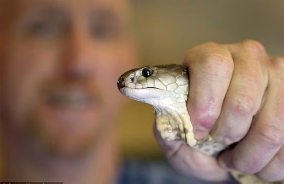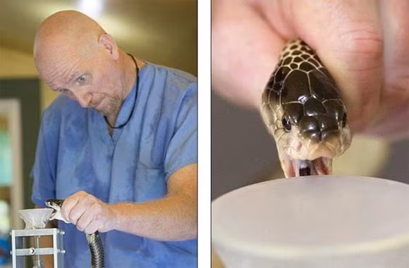 Là người lấy nọc rắn chuyên nghiệp, ông Harrison biết cách điều khiển con rắn để tránh sự phản công của chúng và lấy nọc độc chảy ra từ đôi răng hàm sắc nhọn.