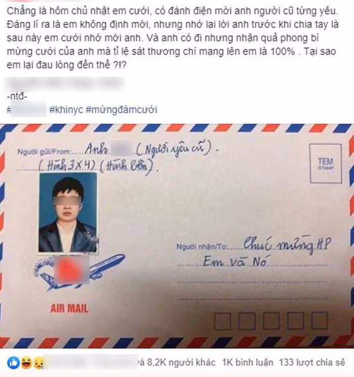 - "Ý của ông người yêu cũ này là mừng phong bì bạn mấy lần như này là tương ứng với chúc bạn mấy lần cưới đó. Ông này nham hiểm thật".