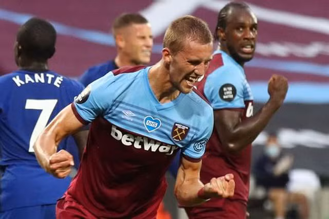 Soucek ăn mừng bàn thắng vào lưới Chelsea