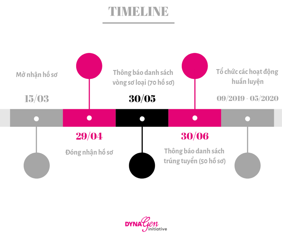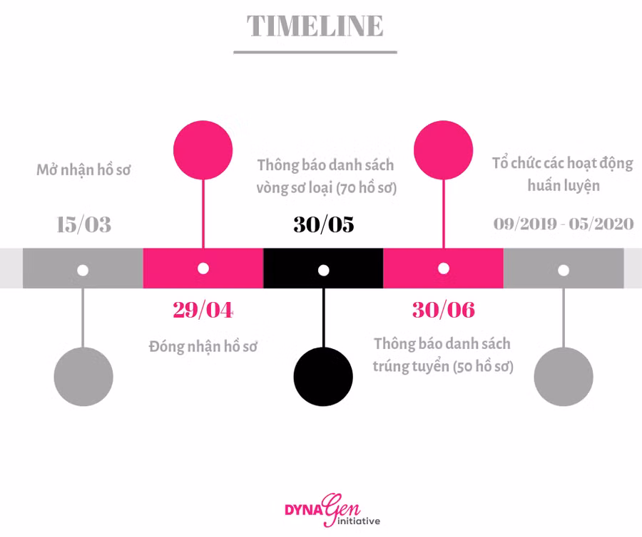 50 sinh viên tài năng trúng tuyển sẽ được tham gia vào các chương trình huấn luyện đặc biệt của DynaGen Initiative trong năm học 2019 - 2020 như sau: