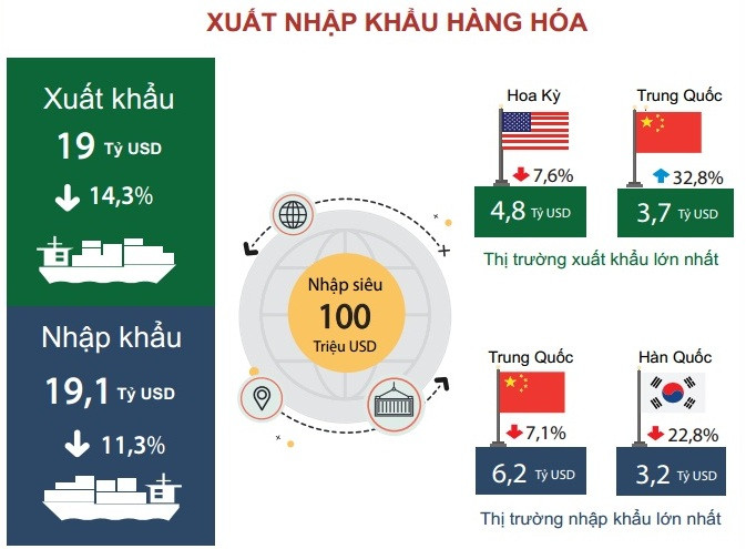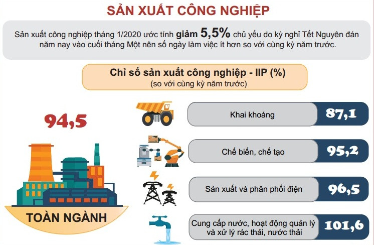 Tuy nhiên, do là tháng Tết, tổng kim ngạch xuất, nhập khẩu hàng hóa tháng 1/2020 ước tính đạt 38,1 tỷ USD, giảm 12,9% so với cùng kỳ năm trước, trong đó kim ngạch xuất khẩu hàng hóa đạt 19 tỷ USD, giảm 14,3% so với cùng kỳ năm trước. Cán cân thương mại hàng hóa tháng 1 ước tính nhập siêu 100 triệu USD.