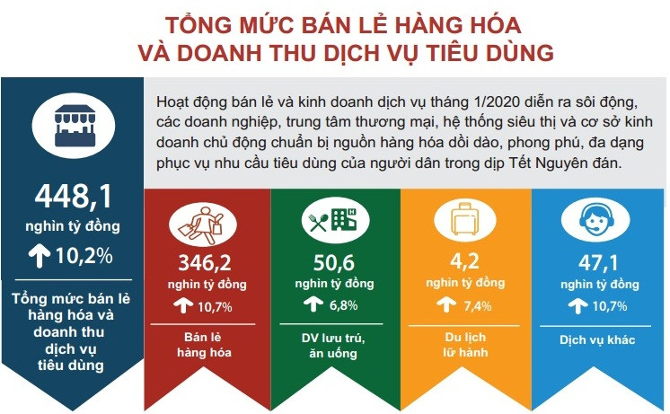 Khách quốc tế đến Việt Nam trong tháng 1 ước tính đạt gần 2 triệu lượt người, cao nhất từ trước đến nay do nhu cầu du lịch, nghỉ dưỡng và thăm thân nhân của khách quốc tế và Việt kiều tăng mạnh trong dịp Tết Nguyên đán 2020.