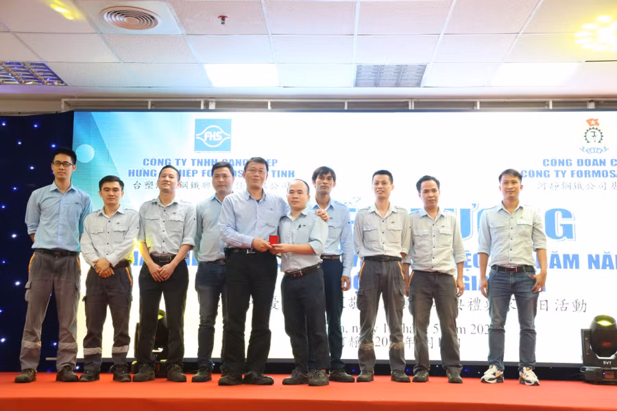 Chiều 13/5, Công ty TNHH Gang thép Hưng Nghiệp Formosa Hà Tĩnh (Formosa Hà Tĩnh) tổ chức Lễ biểu dương nhân viên ưu tú, nhân viên làm việc lâu năm.