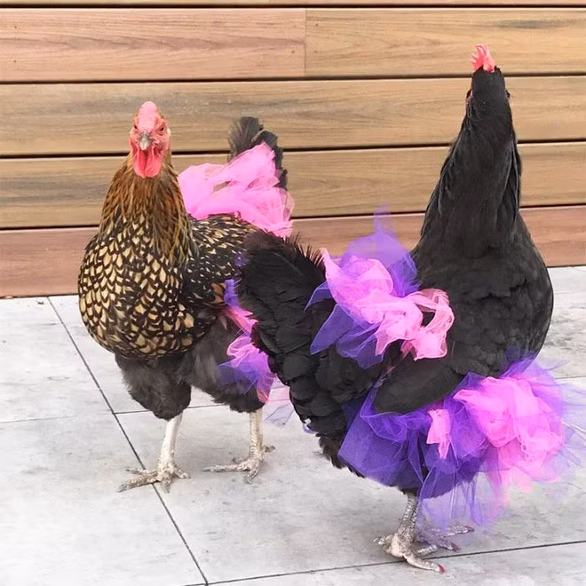 Thiết nghĩ, loài gà có bộ lông dày nên không cần thiết phải mặc thêm quần áo. Nhưng thử một lần chơi lớn mặc váy múa ba lê, chúng đã khiến con người phải trầm trồ nhìn bằng con mắt khác. Trông chúng thật sự đáng yêu, dù là gà trống hay gà mái.