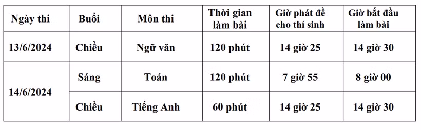 Theo đó, lịch thi vào lớp 10 hệ không chuyên như sau: