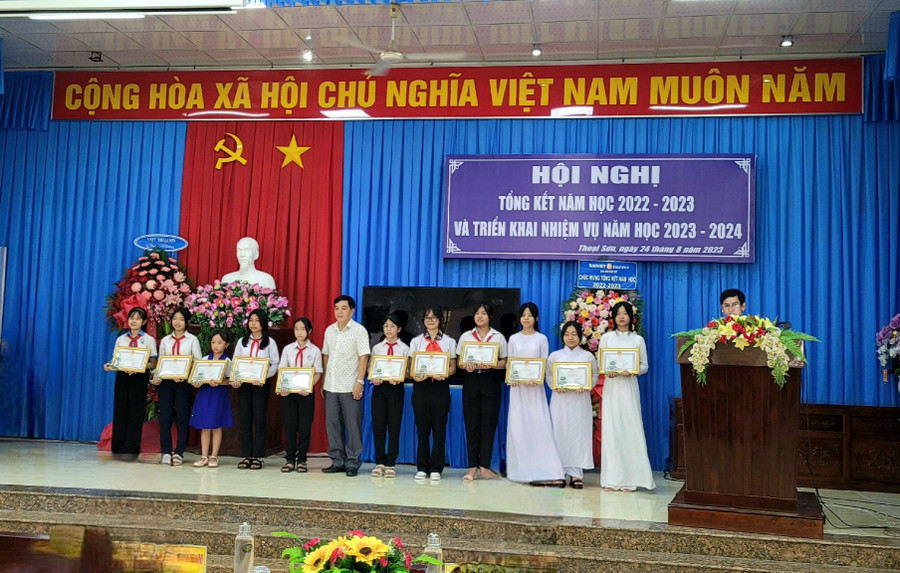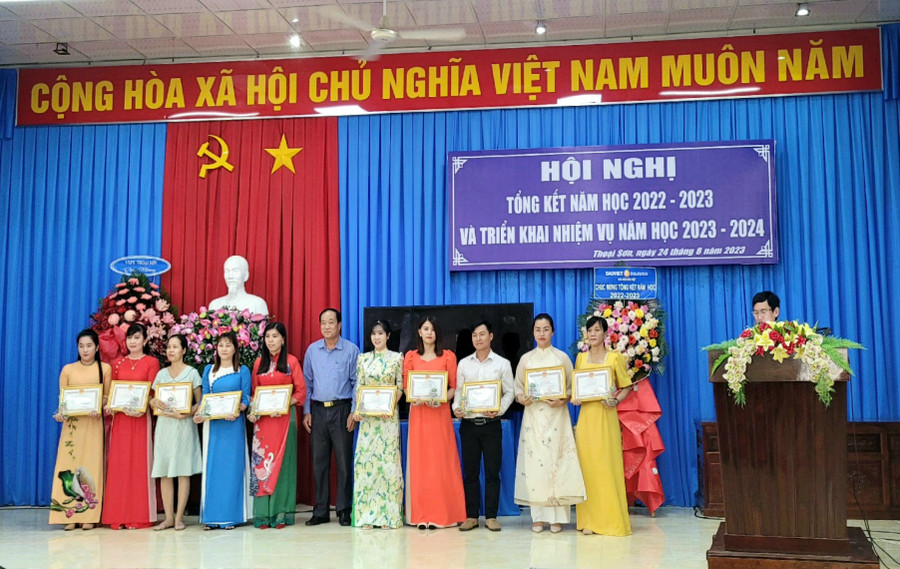 Dịp này, ngành GD huyện Thoại Sơn, có 24 CBQL và giáo viên đạt danh hiệu CSTĐ cấp tỉnh (năm học 2019 – 2020 và 2021 – 2022); 62 giáo viên đạt thành cao cấp tỉnh, 52 học sinh đạt giải cấp kỳ thi cấp tỉnh năm học 2022 – 2023 được vinh danh trao thưởng.