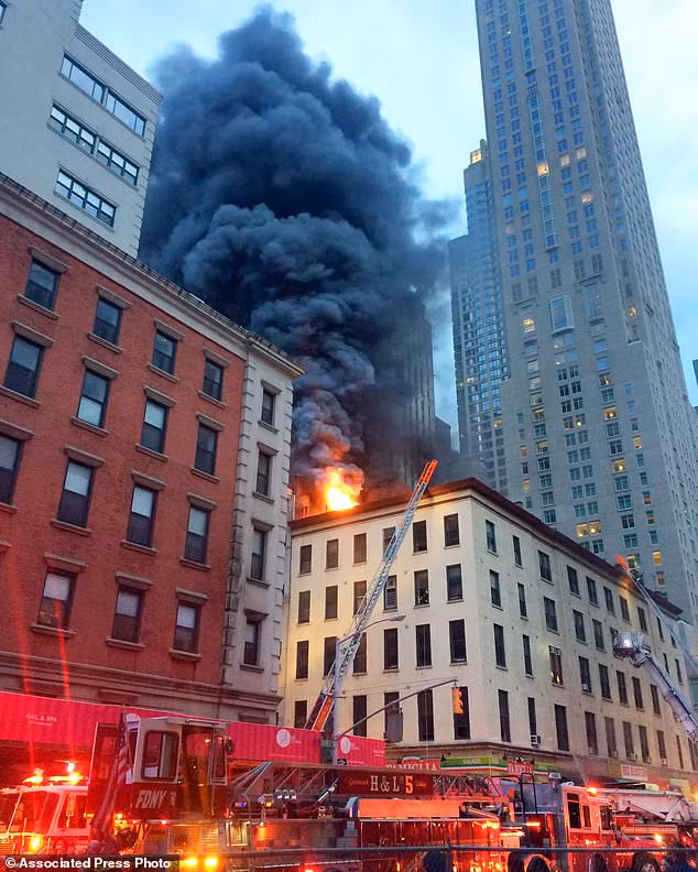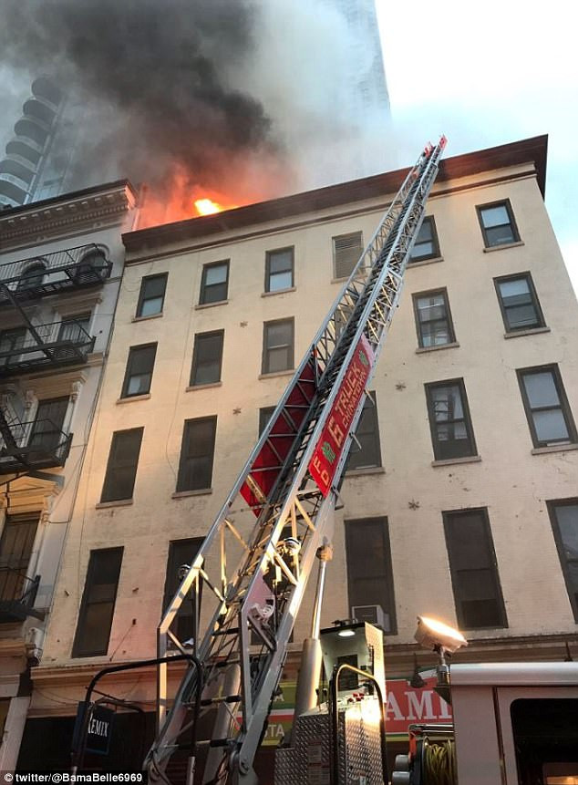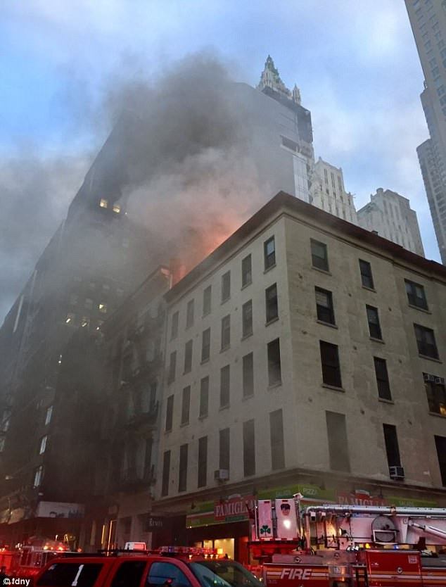 Ngọn lửa đã bắt đầu trước 7 giờ tối tại một tòa nhà ở quận Tribeca. Khói và lửa đã bốc lên tận lên mái nhà.