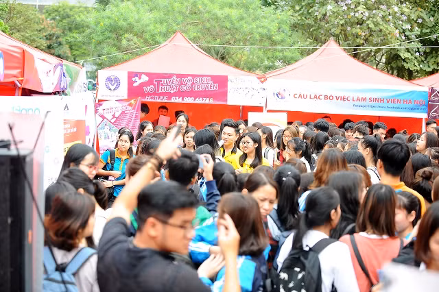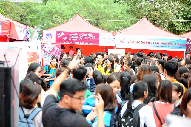 Bên cạnh các gian tuyển dụng nhân sự tại chỗ của các doanh nghiệp còn có nhiều gian tuyển thành viên, CTV của các CLB sinh viên.