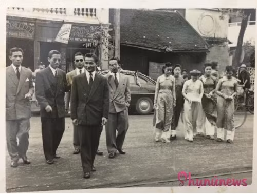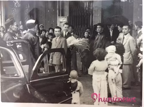 Dàn "siêu xe" trên là của con trai ông chủ tiệm may (người ôm bó hoa) dùng để rước dâu, trong hình là gia đình chú rể đến nhà cô dâu ở phố Sinh Từ (nay là phố Nguyễn Khuyến, Hà Nội).