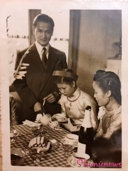 Đón dâu xong, tiệc cưới được tổ chức ở khách sạn số 1 Hàng Khay. Chú rể lịch lãm đứng cạnh cô dâu mới...