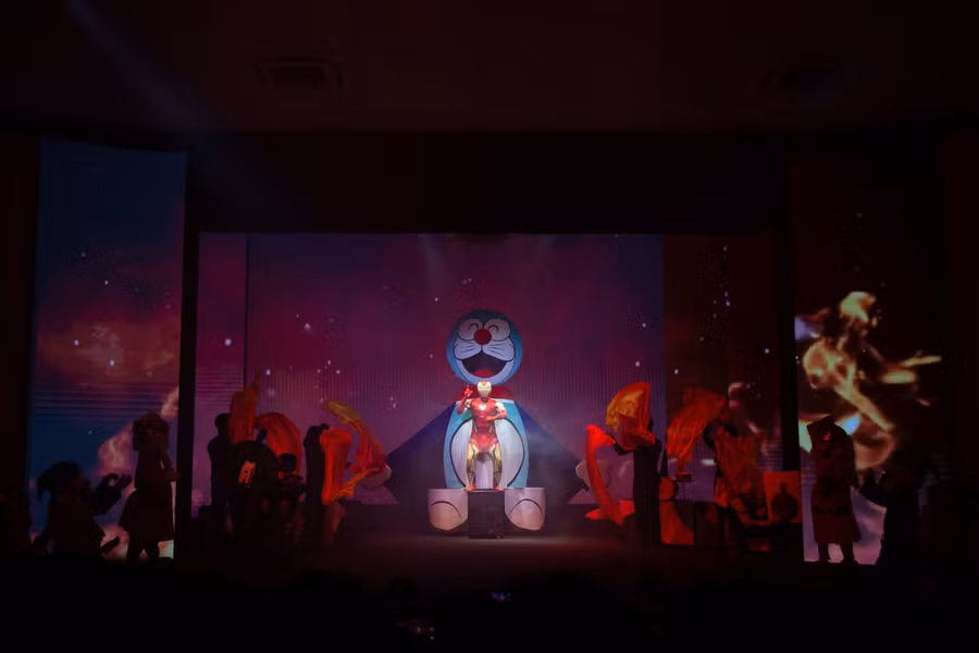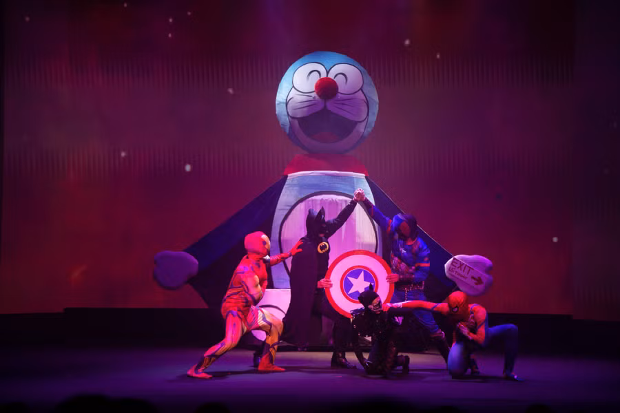 Riêng mèo máy Doraemon xuất hiện trong tiết mục “Doraemon và những người bạn” thật cao lớn, hài hước và… nhiều chuyện nhưng đều là những chuyện đáng yêu, bổ ích. Ngoài ra, tiết mục “Đội siêu nhân cứu hộ” còn mang đến những trải nghiệm về cách thoát hiểm khi có sự cố về cháy nổ…