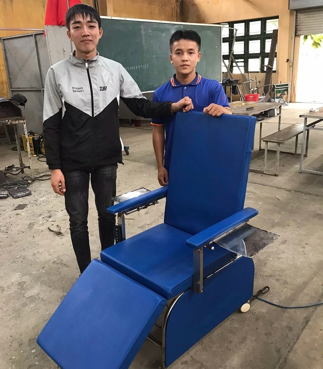 Với mong muốn hỗ trợ bệnh nhân chạy thận, sinh viên Nguyễn Tiến Duy và Võ Đăng Tùng, Trường Cao đẳng Nghề Phú Yên, đã chế tạo nên một chiếc ghế đặc biệt tích hợp nhiều tính năng tạo sự thoải mái cho người bệnh. Nói về lý do chế tạo sản phẩm, Nguyễn Tiến Duy kể, tháng 9/2021, khi đến Bệnh viện Đa khoa tỉnh Phú Yên, Duy và Tùng đã nhìn thấy nỗi vất vả của nhiều người chạy thận.