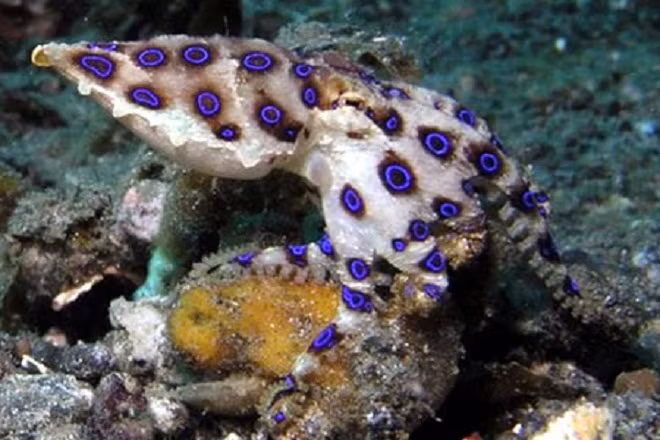 BẠch tuộc Blue Ringed. Loài bạch tuộc này có làn da có các nốt giống những chiếc nhẫn màu xanh. Khi bị nó cắn, trong vòng 5 phút, nạn nhân sẽ cảm thấy tê liệt, và nếu để lâu sẽ dẫn đến tình trạng tim ngừng đập. Mặc dù hô hấp nhân tạo có thể cứu nạn nhân sống sót, nhưng rất khó tránh các biến chứng như bị mù, tê liệt vĩnh viễn.