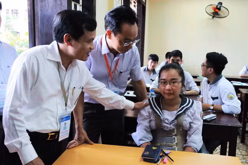 Tại đây đoàn đã quán triệt trưởng điểm thi và các cán bộ coi thi nêu cao tinh thần trách nhiệm hơn nữa, hết sức cẩn trọng trong công tác coi thi bài thi tổ hợp, tránh sai sót không đáng có; không bóc nhầm đề thi môn thành phần, không phát nhầm mã đề thi của môn thành phần cho thí sinh; riêng môn Vật lý có phần đính chính phải phát đúng và đề nghị thí sinh kiểm tra mã đính chính với mã đề cần đính chính cho trùng khớp. Trong phần thu bài thi, cũng ghi đúng mã đề của thí sinh. Tiếp tục phát đề môn thi tiếp theo đảm bảo đúng mã đề môn trước… Qua kiểm tra, đoàn đã đánh giá cao công tác coi thi của các cán bộ làm thi ở các điểm đến kiểm tra.