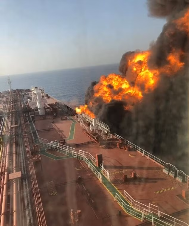 Một số hình ảnh tàu chở dầu bị cháy hôm nay:
