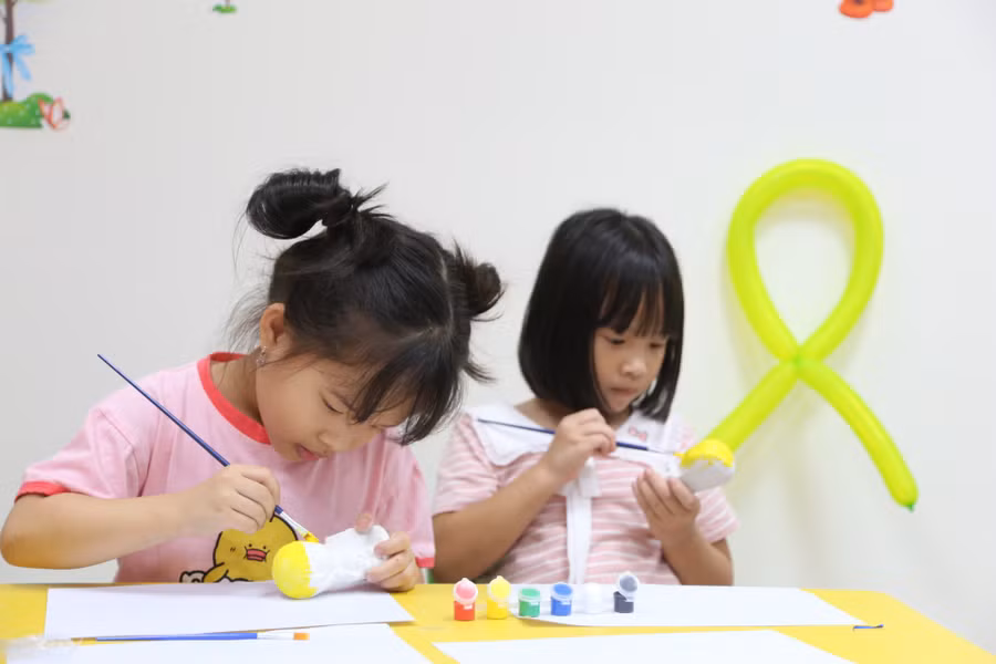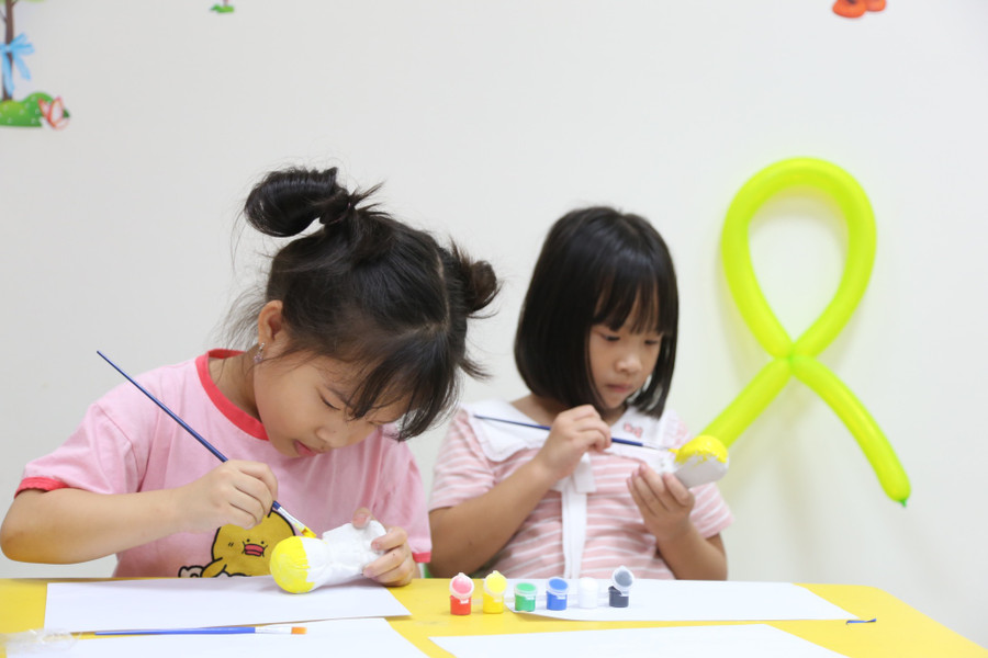 | Tại ngày hội gia đình, trẻ em được bố trí riêng khu vui chơi để các em thoả sức sáng tạo. |