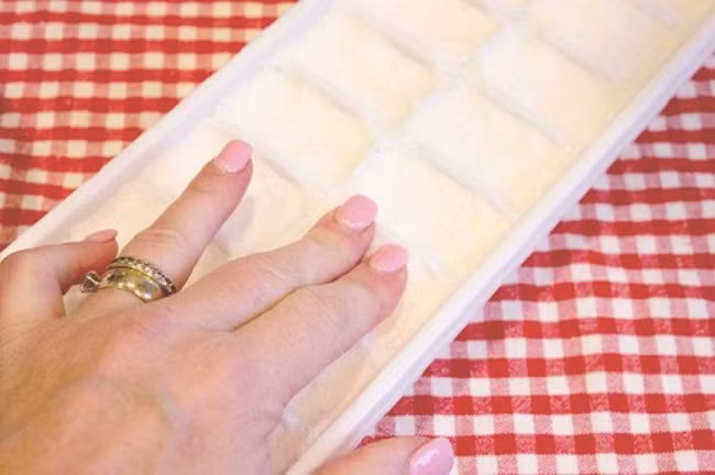 – Đổ hỗn hợp vào khuôn đá rồi nén chặt thành từng viên xà phòng.