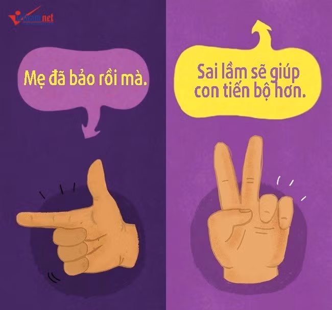 Ngay lập tức đổ lỗi cho những sai lầm của trẻ sẽ khiến con mất đi niềm tin vào bản thân. Cha mẹ nên làm người tư vấn cho trẻ để rút ra kinh nghiệm và làm tốt hơn trong những lần sau.