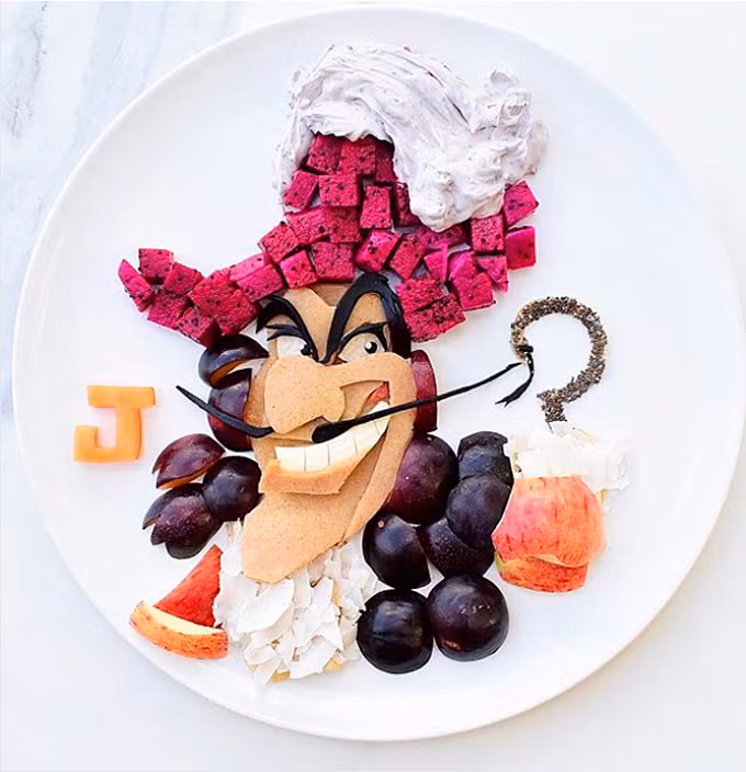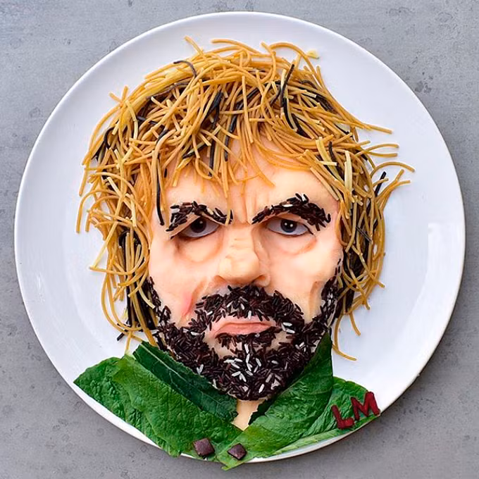 Các nhân vật đó không chỉ trông giống với bản gốc mà nó còn là sự kết hợp của những thực phẩm lành mạnh, cân bằng. Ví dụ, bức chân dung cô nàng Helena Bonham Carter trong vai Nữ hoàng đỏ của Alice in Wonderland trông rất kiêu ngạo được làm từ nấm, phô mai kem và bắp cải đỏ.