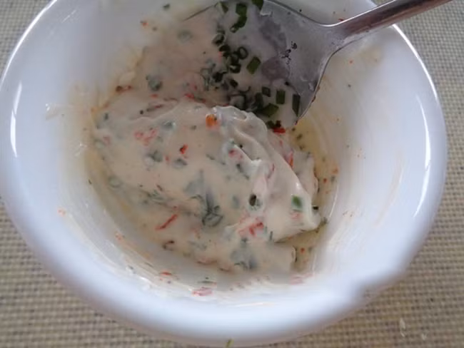 - Hỗn hợp sốt mayonnaise: 2 muỗng canh mayonnaise + 1 muỗng hành lá + 1 muỗng canh tương ớt