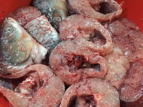 - Đun lửa nhỏ trong 6 tiếng tới khi cạn nước cho thịt và cá ngấm đều gia vị.