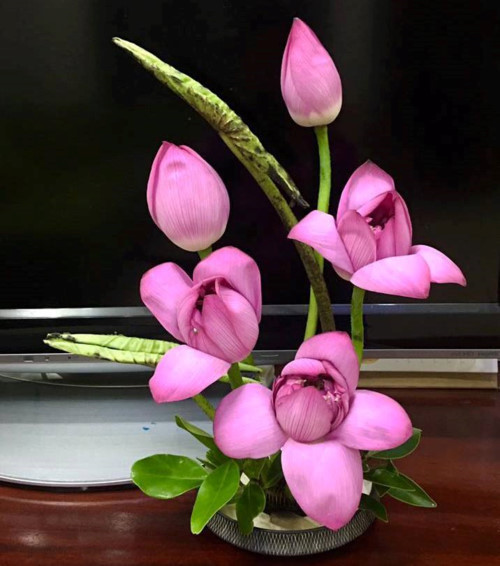 Cùng chiêm ngưỡng và tham khảo cách cô giáo Nguyễn Thị Thúy Minh – Hiệu trưởng Trường Tiểu học Đông Thái (quận Tây Hồ, Hà Nội) trổ tài cắm hoa sen, đơn giản, đẹp mắt, khiến tâm hồn mỗi người thư thái, dịu mát hơn giữa nắng hè.