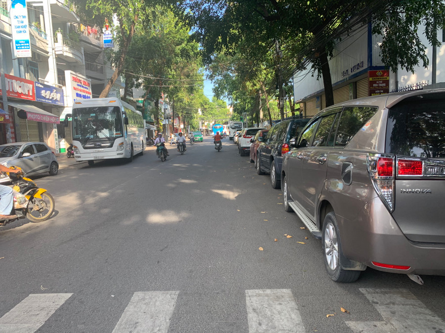 | Ngay sát điểm thi trường Lý Tự Trọng ô tô đậu kín hai bên đường. |