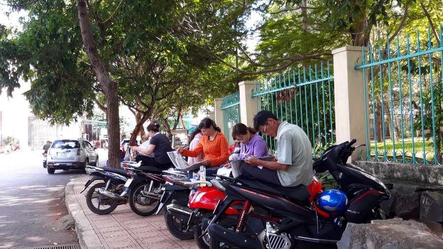 Tại điểm thi trường THPT Lý Tự Trọng (Nha Trang, Khánh Hòa), sau khi đưa con đi thi, nhiều phụ huynh đã ở lại đợi con. Theo đó, hầu hết các quán nước, quán cà phê hai bên đường gần điểm thi đều kín chỗ ngồi. Khách đa số là những phụ huynh ngồi đợi con và sôi nổi bàn luận về kỳ thi năm nay.