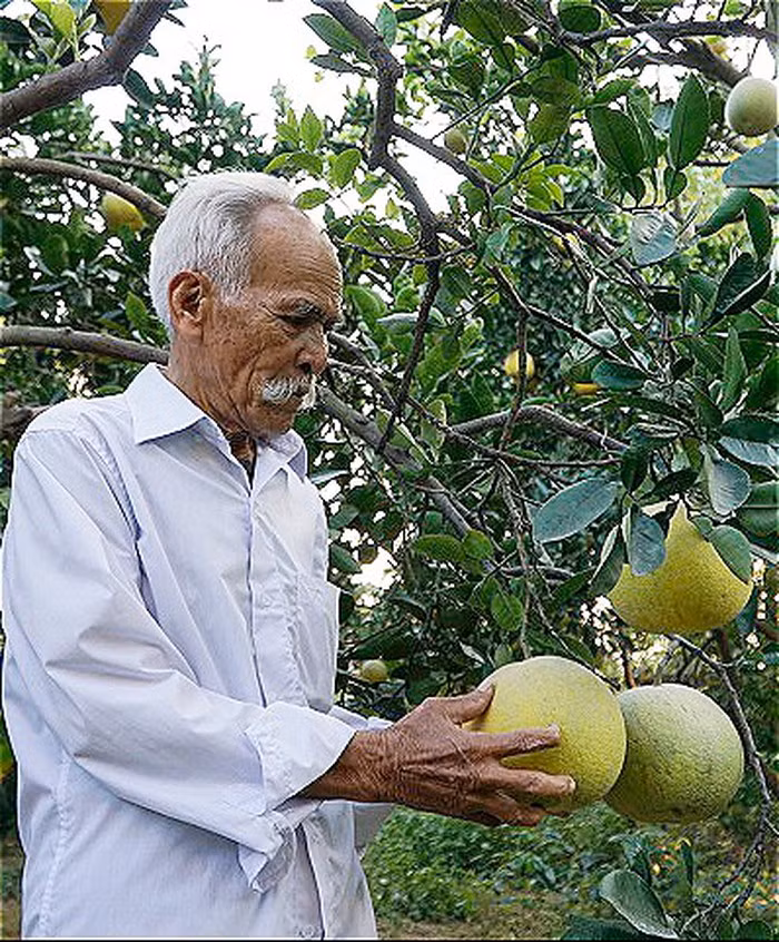 Về già, ông Kính mượn 200m2 đất của con trai cả để trồng bưởi, mỗi năm ông thu hoạch được 2 lần, bán được khoảng 6 triệu đồng..