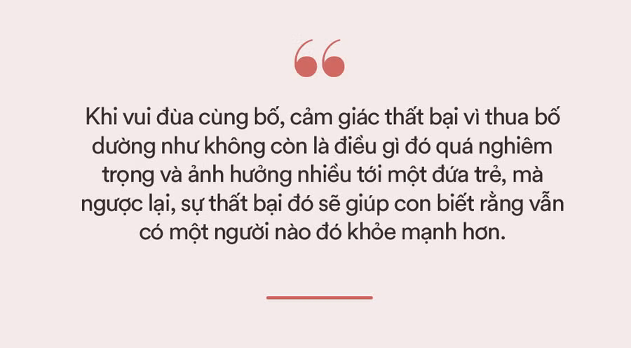 Khi vui đùa cùng bố, sự thất bại khi thua bố dường như không còn là điều gì đó quá nghiêm trọng và ảnh hưởng nhiều tới một đứa trẻ, mà ngược lại, sự thất bại đó sẽ giúp con biết rằng vẫn có một người nào đó khỏe mạnh hơn.