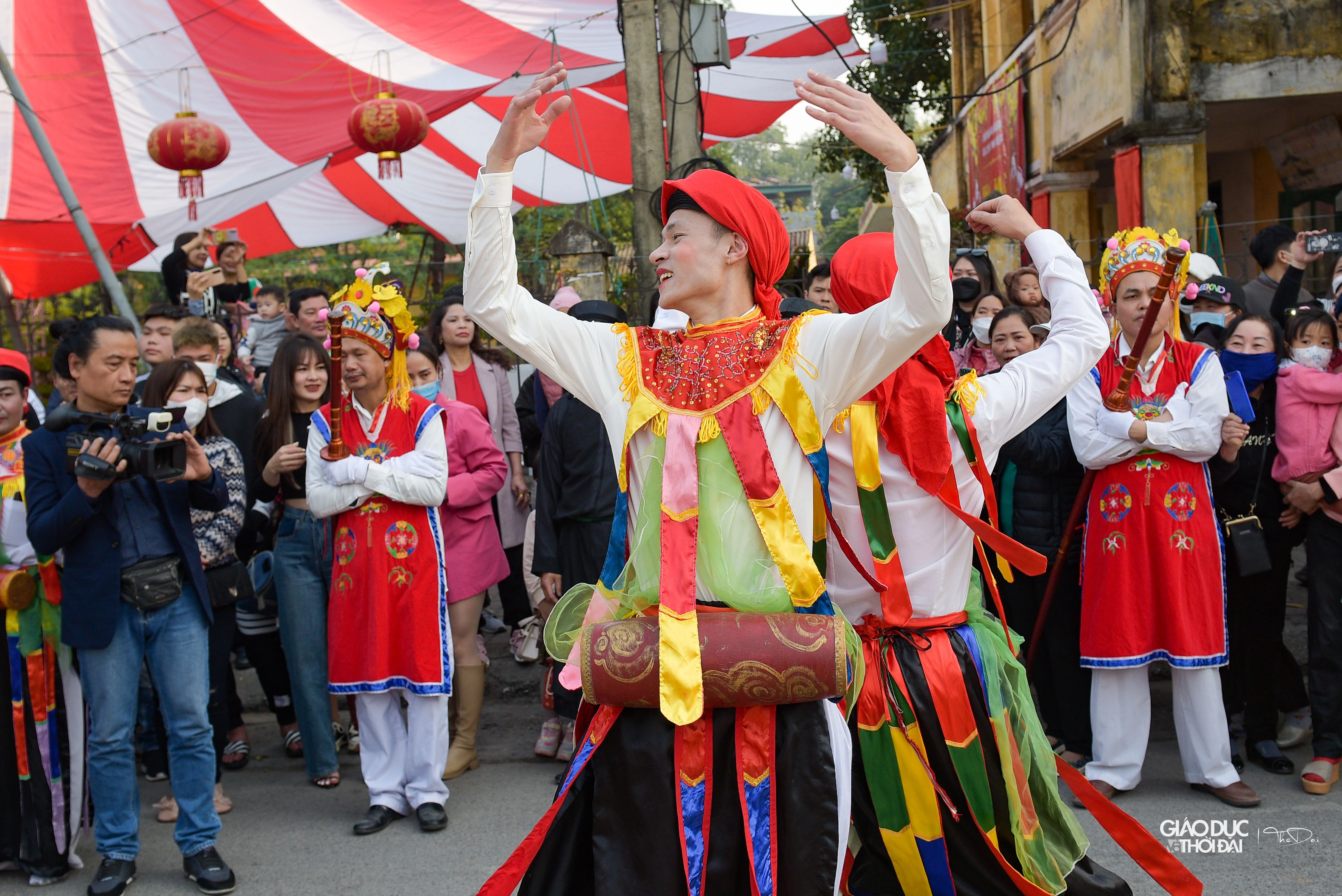 | Năm nay hội làng Triều Khúc có 12 cặp ' con đĩ' tham gia múa thay nhau. |