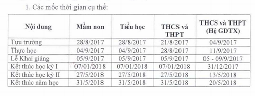 Cũng theo Kế hoạch, kết thúc năm học ngày 31/5/2018 và thời gian xét công nhận hoàn thành chương trình tiểu học và xét công nhận tốt nghiệp THCS xong trước ngày 15/6/2018.