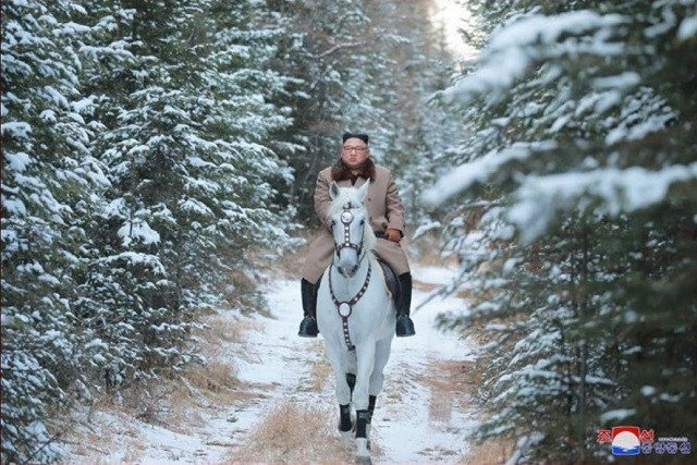 Một số hình ảnh Chủ tịch Triều Tiên Kim Jong-un cưỡi bạch mã trên núi tuyết: