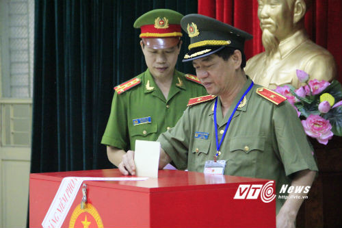 | Thiếu tướng Đoàn Duy Khương bỏ phiếu bầu cử. |
