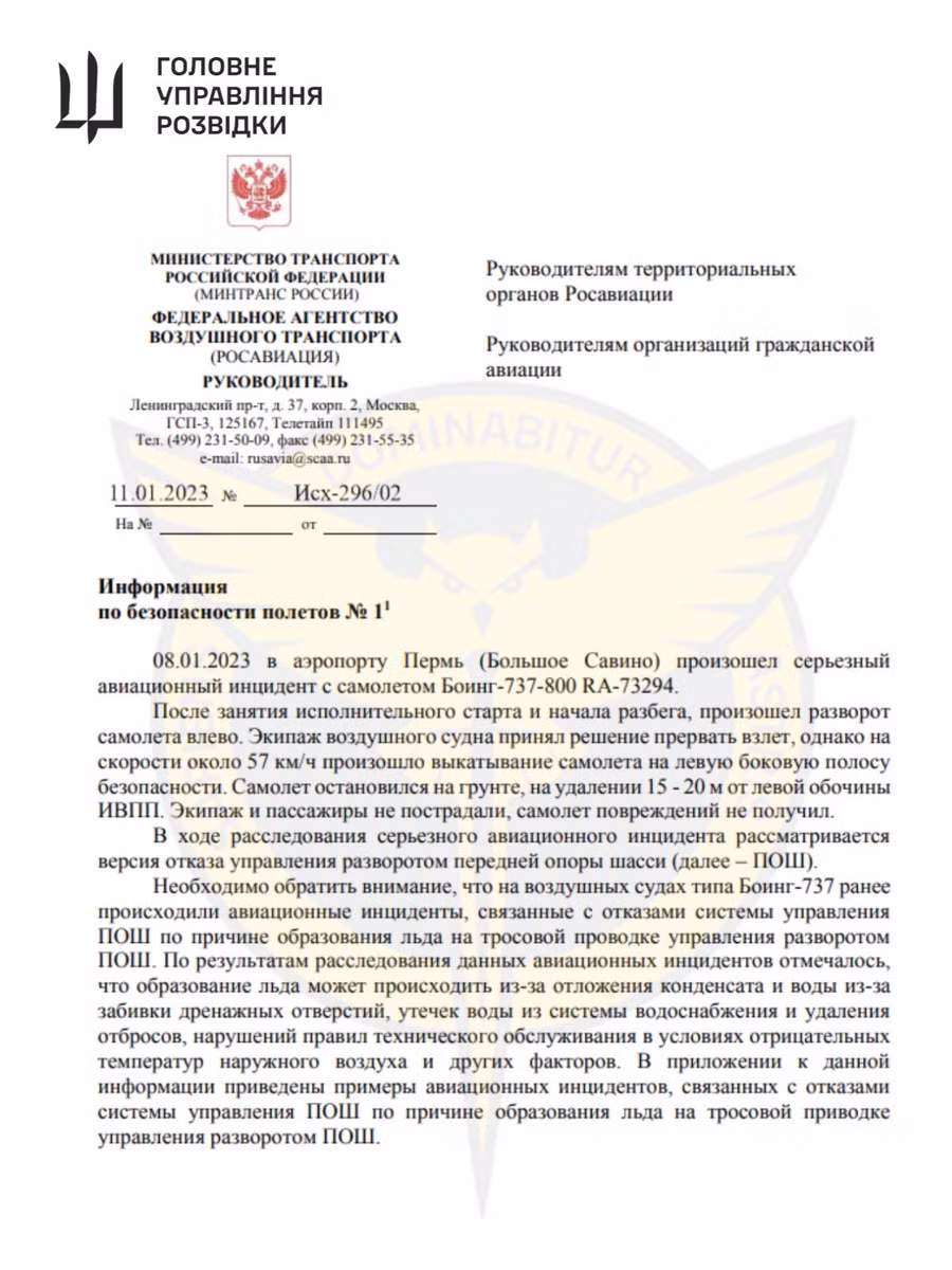 Nhưng báo cáo của GUR được củng cố bởi thực tế là từ tháng 9 năm 2022, Tổ chức Hàng không Dân dụng Quốc tế (ICAO) đã đánh dấu đỏ cho Nga, cùng với Liberia và Bhutan, cho thấy nguy cơ cao đối với an toàn chuyến bay.