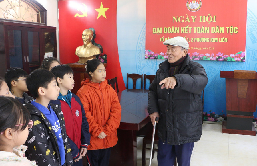 Nhà giáo Lê Anh Vân - Bí thư Chi bộ, Hiệu trưởng Trường Tiểu học Đống Đa cho hay, trước đó nhà trường đã mời các thành viên của Chi hội Cựu chiến binh phường Kim Liên tới trường để giao lưu, kể chuyện truyền thống tại sân trường. Học sinh được nghe những câu chuyện đời lính của các thế hệ cha ông ngày xưa đi chiến đấu gian nan ra sao để có được hòa bình ngày nay.