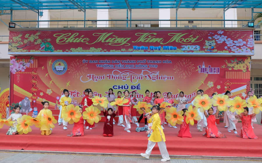 | Nhiều tiết mục văn nghệ của học sinh Trường tiểu học Đông Thọ chào mừng Xuân Quý Mão 2023. |