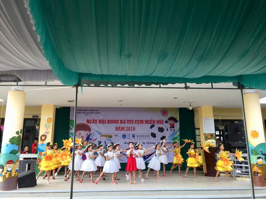 Tại trường TH Bình Thành, sân trường hôm nay khác lạ so với mọi khi, bởi tràn ngập những tiếng cười, tiếng hò reo cổ vũ, sự hào hứng, tràn ngập những sắc màu khác nhau của “Ngày hội bóng đá và kỹ năng sống”.