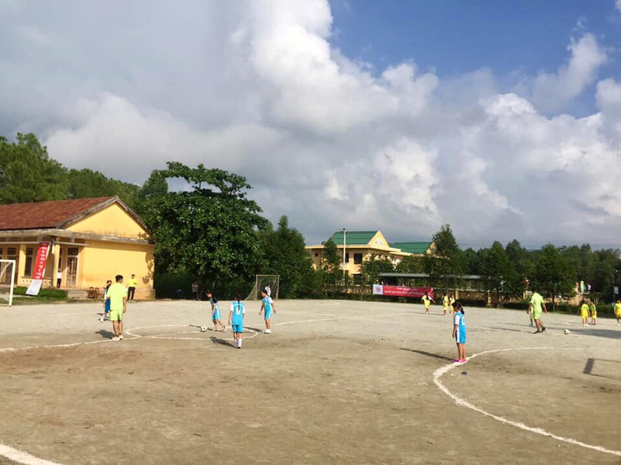 Còn em Nguyễn Hoài Anh, một học sinh lớp 4/2 hào hứng: “Không chỉ được đá bóng mà cháu còn được giao lưu gặp gỡ rất nhiều bạn đến từ các trường khác trong thị xã. Ngoài ra, chúng cháu còn được chơi ghép tranh, vẽ tranh, xé dán về bom mìn, bảo vệ môi trường, cháu rất thích”.