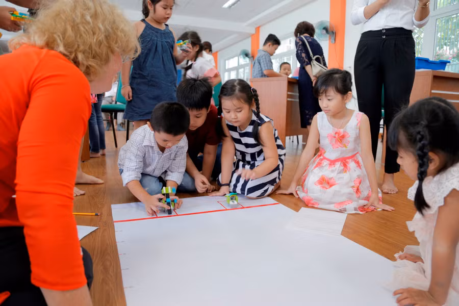ThS. Sarah Williver chia sẻ, “Khi giảng dạy với STEM, chúng tôi tạo ra một môi trường học tập nơi học sinh khám phá và đặt câu hỏi, suy nghĩ, kiểm tra, ghi lại dữ liệu, phân tích dữ liệu và sau đó đánh giá. Trong một lớp học, quá trình này được lặp đi lặp lại nhiều lần”. Bàn ghế lớp học được bố trí khá thoải mái để HS có thể dịch chuyển được từ bàn xuống sàn nhà để tham gia các hoạt động trong giờ học.
