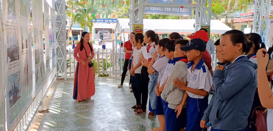 Sáng 18/8, Ban Quản lý Khu di tích Văn hóa Óc Eo tỉnh An Giang phối hợp cùng Phòng GD&ĐT huyện Thoại Sơn tổ chức triển lãm ảnh Chuyên đề "Cuộc đời, sự nghiệp của Chủ tịch Tôn Đức Thắng”.
