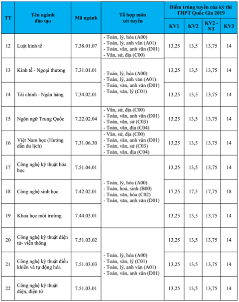Bảng điểm trúng tuyển cụ thể từng ngành vào LHU: