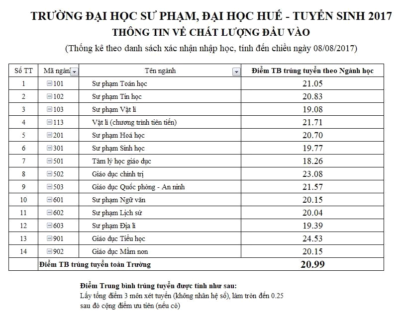 Trong số 14 ngành sư phạm tuyển sinh vào trường, có 10 ngành điểm trung bình trúng tuyển trên 20 điểm, các ngành còn lại điểm trung bình trên 18 điểm, chỉ có 1 ngành 15,75 với chỉ 2 sinh viên.