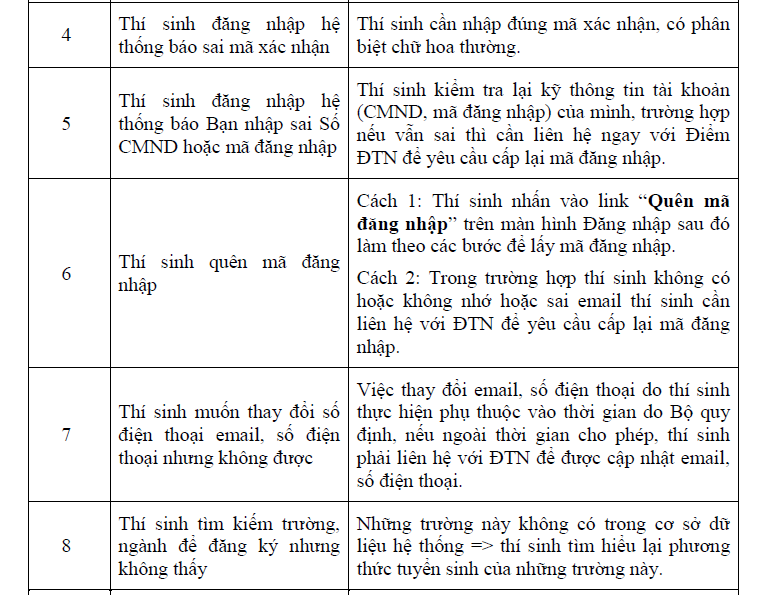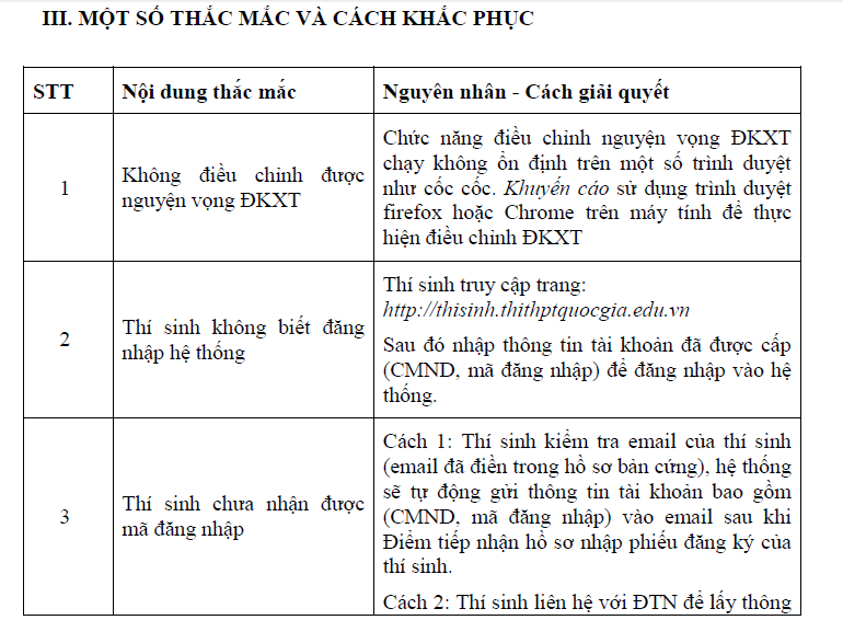 Dưới đây là một số vấn đề có thể thí sinh có thể gặp phải và biện pháp xử lý: