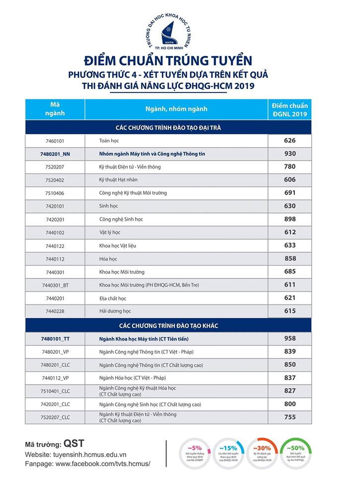 Điểm chuẩn các ngành đào tại tại TPHCM hầu như đều tăng so với năm 2018. Điểm chuẩn từ 606 điểm đến 958 điểm.Danh sách trúng tuyển gồm có: 2.199 thí sinh